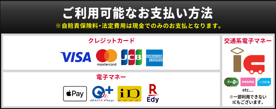 ※自賠責保険料・法定費用は現金でのみのお支払となります。